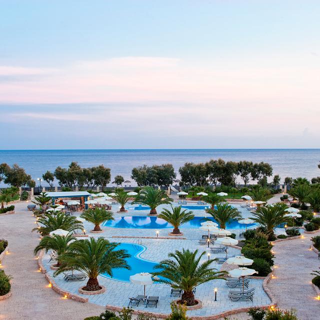 Het resort beschikt over moderne en lichte kamers, van alle gemakken voorzien, met een eigen balkon of veranda. Begin je dag met een heerlijk ontbijt in het buffetrestaurant waar je ’s avonds ook kunt genieten van mediterrane en zeevruchten gerechten. Voor de nodige ontspanning zijn er meerdere zwembaden, een fitnesscentrum en een privéstrand met ligbedden en parasols. De nabijgelegen watersporten, een duikcentrum en activiteiten zoals paardrijden en vissen zorgen voor wat avontuur tijdens je vakantie op Santorini.